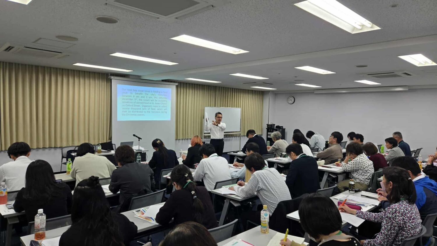 14時までに来てくださいねと主催者(株)アルクの植元君から言われていたが、そんなわけでいつものようにすたすた歩けず。到着したのは開始30分前だった。すでに会場入りされている先生方もおられる。遅くなってごめんと言いながら講師席に腰を下ろした。今回は公立中学校の先生方がかなり多く、中学1年生からの指導についてお話し申し上げた。