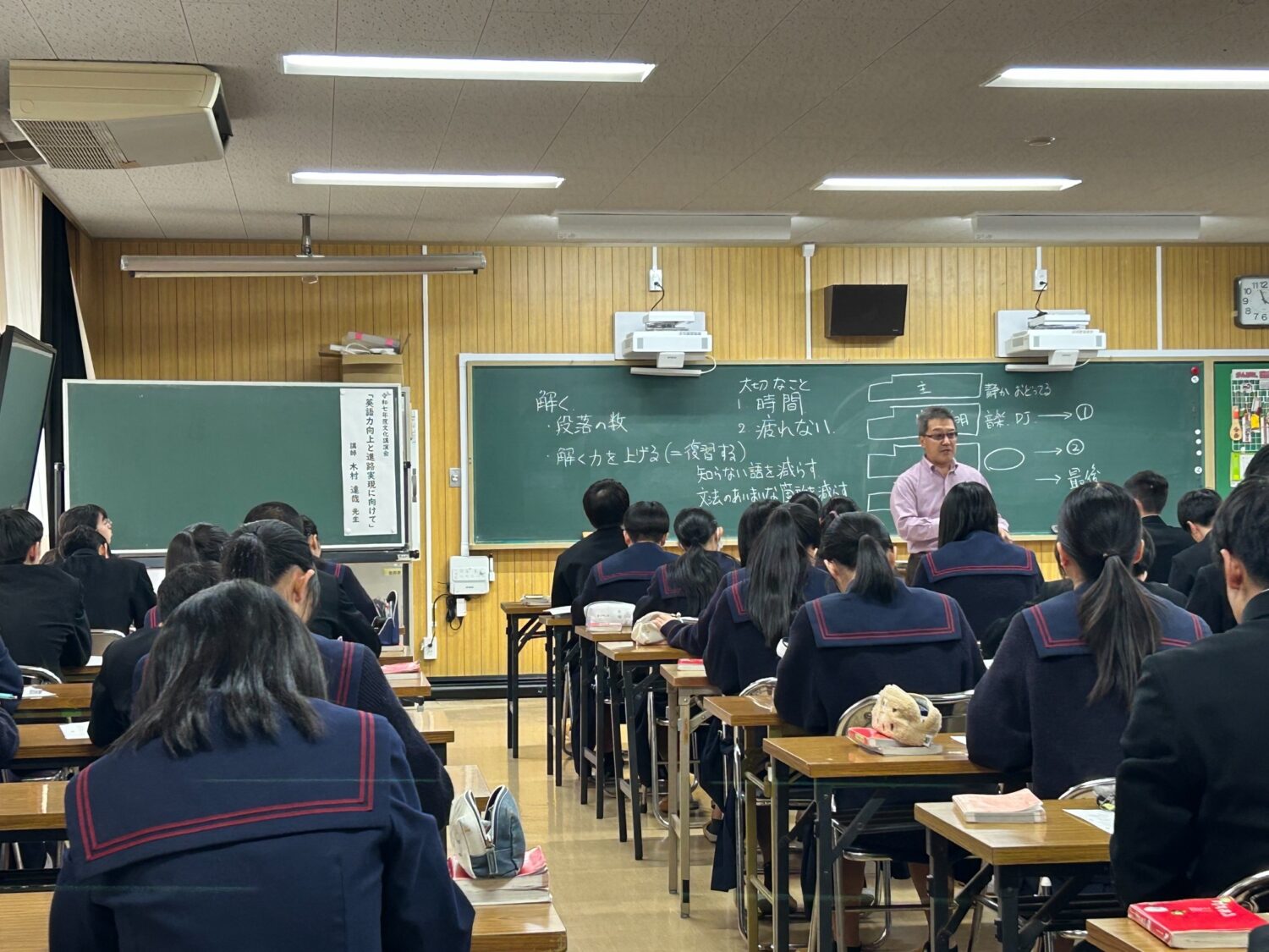 生徒たちの中には、なかなかうまくいかんもんだなと思っている者たちもいるだろう。成績だけでなくエネルギー量が低くてやる気もおきないという若者も少なくはなかろう。しかし、自分で切り開くしかない。なんとかしないとと奮起し、重い腰を上げる子どもがひとりでもいることを願い、大人として、人生の先輩として、真剣に話をした。気持ちが届けばいいが。